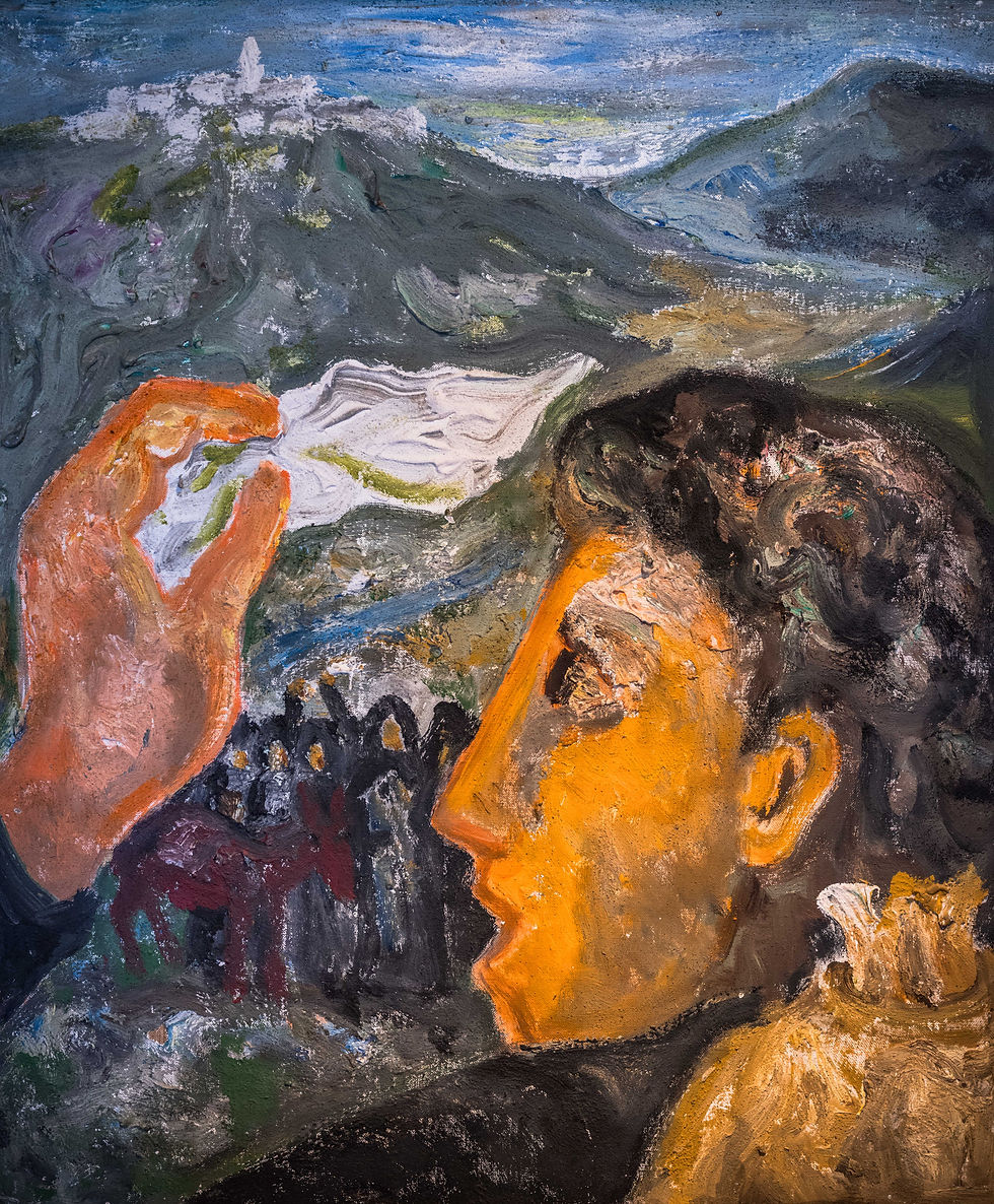 Voici quelques exemples de son travail de peintre et dessinateur. Levi représente le labeur quotidien, des visages de femmes où la fatigue a creusé des traits durs, le profil (orange), chagrin et crainte mélangés, d'un émigrant. À l'époque de son confinement, une première vague d'exil s'était déjà produite vers les États-Unis. Certains villageois en revenaient riches, d'autres pas. Dans les masures, le portrait de Roosevelt côtoyait celui de la Vierge.