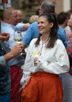 Où est le "vrai" peuple? semble se demander Dick Annegarn dans sa critique de la Fête des Vignerons. Il est sur la place et dans les rues autour des arènes. Il est dedans aussi. Il ne correspond peut-être pas aux schémas soixante-huitards. Mais il est là, chaleureux, fraternisant à chaque coin de rue. L'osmose est totale. Des gens qui ne se connaissent pas s'abordent et se parlent. Il y a beaucoup de téléphones portables, oui, mais ici on les utilise - "tu es où??" - pour se fixer rendez-vous et de voir en chair et en os, ou comme bougie contemporaine piquetant la nuit pendant l'interprétation du célèbre "Lyoba". Des amis qui se sont perdus de vue depuis longtemps se retrouvent. On ne se dit pas toujours des choses essentielles, mais les Grecs de l'Antiquité n'étaient pas non plus tous en train de se raconter l'Iliade...