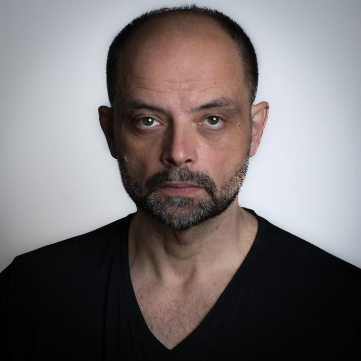 Les images ont été réalisées dans mon salon le 26 décembre 2018 avec un studio mobile (deux flashes, un soft box et un nid d'abeilles), avec un Nikon D5500 équipé de 35 ou 50mm ouvrant à f1.8 - sauf la dernière photo en noir-et-blanc, réalisée aven un Leica M6. Un matériel tout ce qu'il y a de plus standard, donc, mais le sujet, lui, ne l'était pas. Voici ce que cela a donné. Par comparaison, vous trouvez un autre portrait de Slobodan Despot par Anne-Sophie et Benoît de Rous sur leur site "A la Volette".